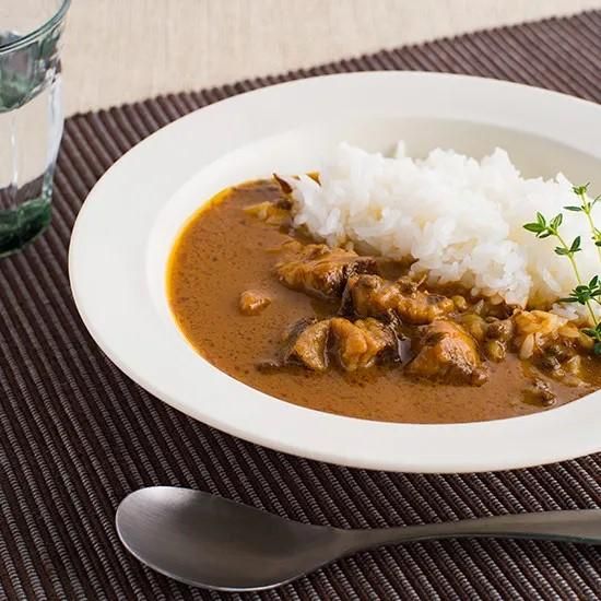 野菜(玉ねぎ、人参)、牛肉(国産)、牛乳、醤油、砂糖、トマトケチャップ、チャツネ、ポークオイル、野菜エキス、ウスターソース、小麦粉、植物油脂(菜種)、山椒、バター、カレー粉、おろしにんにく、ビーフエキス、赤唐辛子、酵母エキス、ブラックペッパー、(一部に小麦・乳成分・牛肉・豚肉・鶏肉・りんご・大豆を含む)